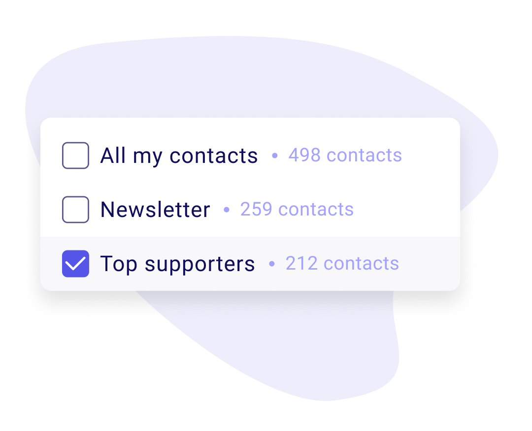 Build the right list in a few clicks and reach the people who care most. Send your mail to a list of contacts or manually select them.